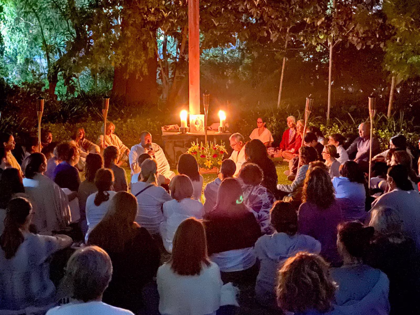 Entre los asistentes estuvieron también cuatro sacerdotes católicos, aprendiendo a meditar, profundizando con gran apertura y sensibilidad. Todos muy interesados en esta enseñanza del yoga y en este diálogo entre tradiciones espirituales. Esto, sin duda, da muchísima esperanza. Algunos de ellos han expresado su deseo de viajar a Ecuador para conocer la obra del padre Dávila y también visitar nuestro ashram en Dos Mangas, como ya lo han hecho varios de ustedes.